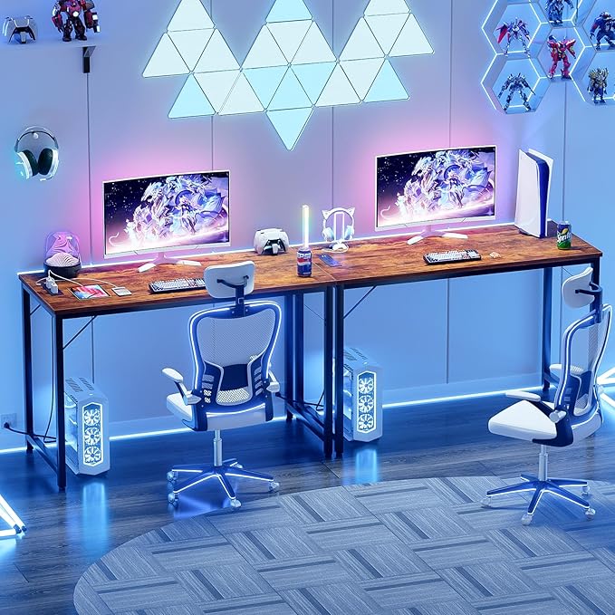 47 Inch Computer Desk with Magic Power Outlets, Modern Office Desk with USB Charging Ports, Sturdy Writing Table, Simple Laptop PC Gaming Desk for Bedroom Workstation, Rustic Brown, 2 Pack