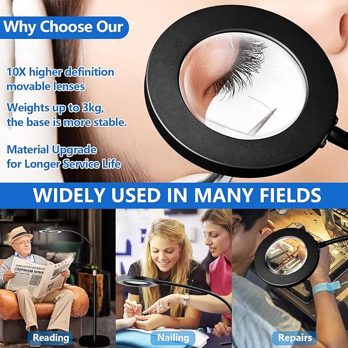 About This CRYSTAL CLEAR MAGNIFICATION:Equipped with a premium 10X HD real glass magnifier, this magnifying lamp provides exceptional clarity and...
