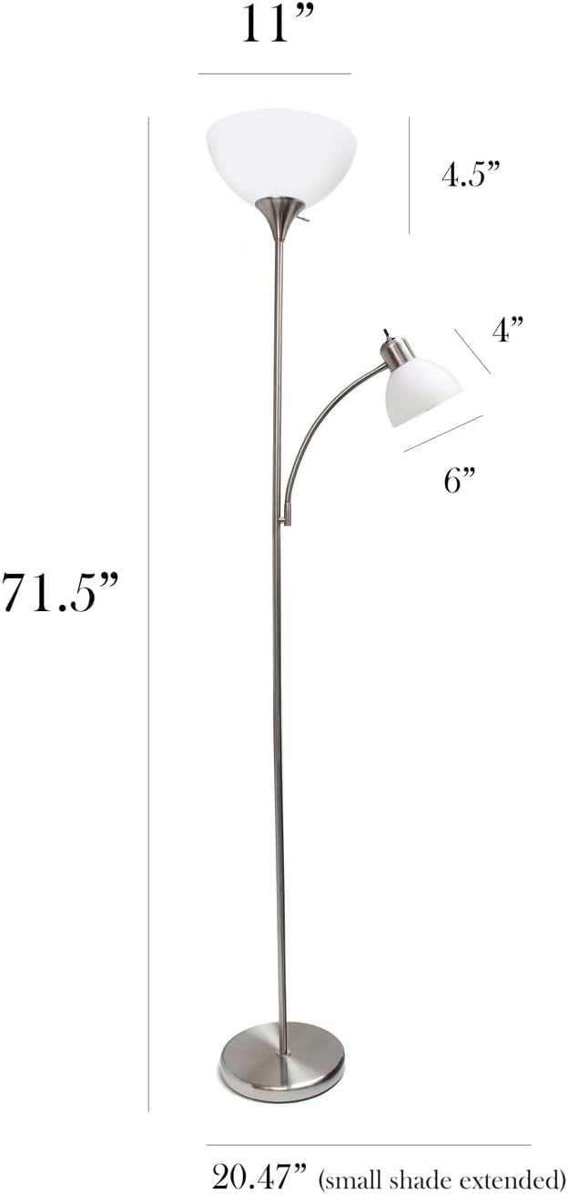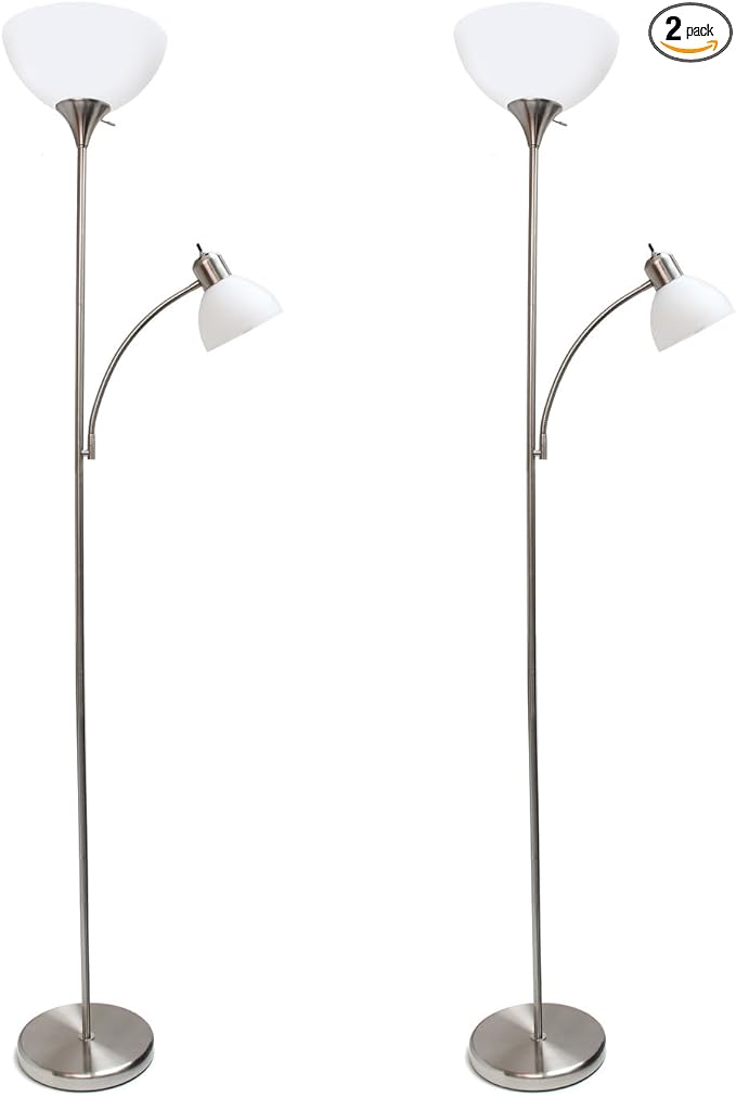 Simple Designs LF2000-BSN-2PK Floor Lamp with Reading Light 2 Pack, Brushed Nickel