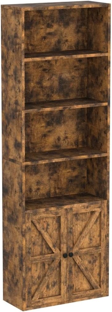 oneinmil 6 Tier Bookshelf and Bookcase Set of 2,Wooden Bookshelves with Cabinet Doors, Floor Bookshelves and Office Storage Cabinets for Home Office, Living Room,Brown