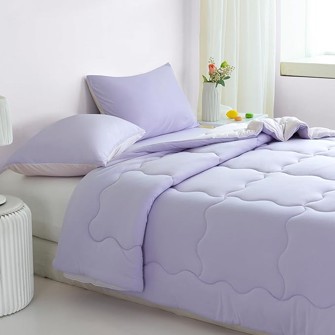 COTTEBED Reversible Softness Pink Purple Twin Comforters Sets for Girl Kids College Dorm, Cute Jersey Knit Lightweight Breathable Fluffy Cozy Comfy Bed Down Comforter Quilt for All Season Twin/Twin XL