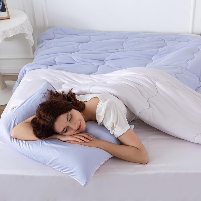 COTTEBED Reversible Ultra-Soft Purple and Light Pink King Size Bed Comforter Set, Jersey Knit T-Shirt Feel Cute Comy Bedding Down Blanket Quilt & Pillowcase Lightweight All Season California Cal King