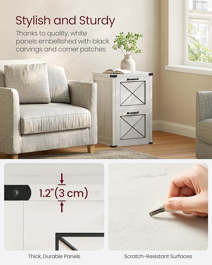 VASAGLE File Cabinet, Filing Cabinet with 2 Drawers, Printer Stand, Fit A4, Letter Size, Hanging File Folders, Modern Farmhouse Style, for Home Office, Study, Rustic White UOFC048T73