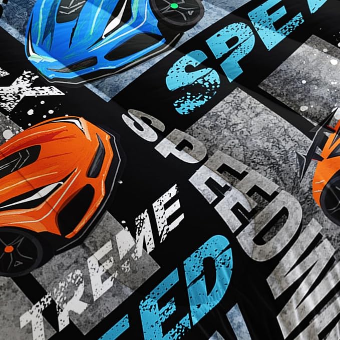 Datura home Sports Car Comforter Set Vintage Racing Car Printed Quilt Bedding Set with 1 Comforter and 2 Pillowcases for Boys and Girls Bedroom All Season(Sports Car Full)