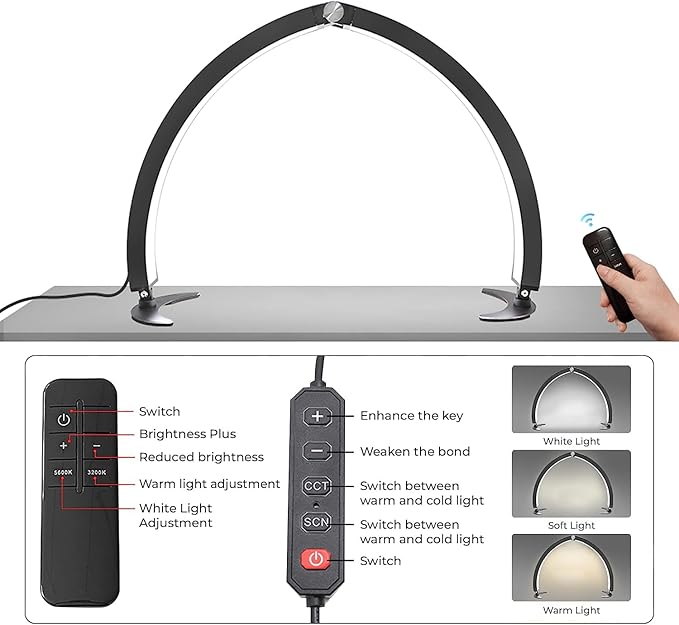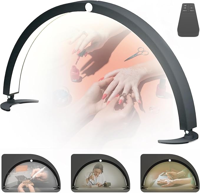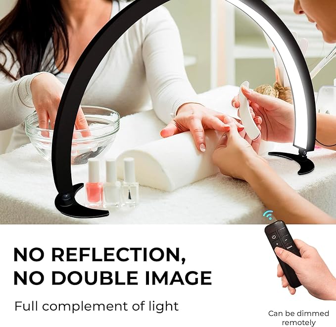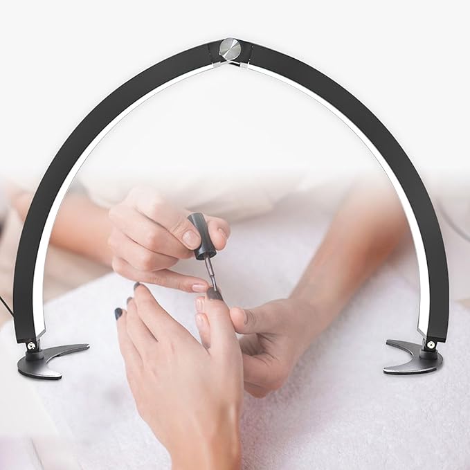 Adjustable Half Moon Light for Nail Desk, Professional LED Light Nail Lash Tech Lighting for Manicure, Pedicure, Tattoo, Lash Work, Manicure Light, Lash Light for Table (Black)