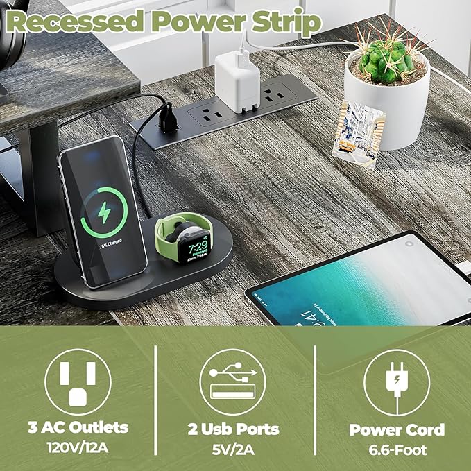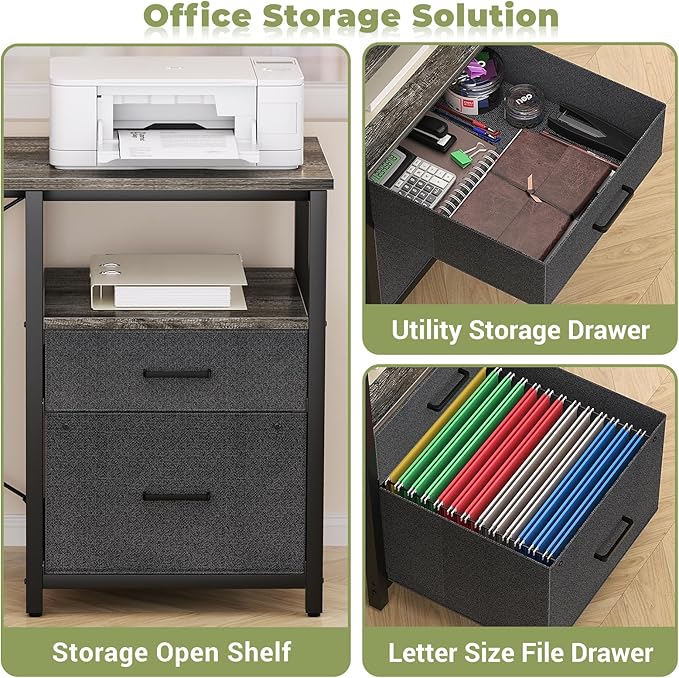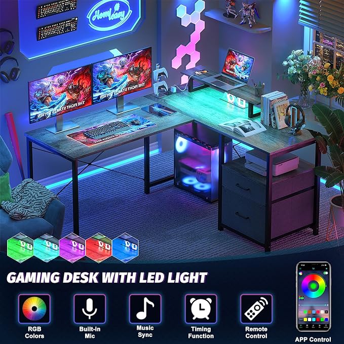 Homieasy L Shaped Computer Desk with Storage File Drawer, Reversible Home Office Desk with Recessed Power Strip and Led Strip, Corner Gaming Desk Work Study Table with Monitor Stand, Black Oak