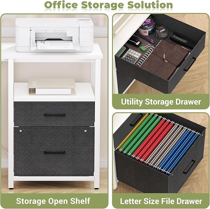Homieasy L Shaped Computer Desk with Storage File Drawer, Reversible Home Office Desk with Recessed Power Strip and Led Strip, Corner Gaming Desk Work Study Table with Monitor Stand, White