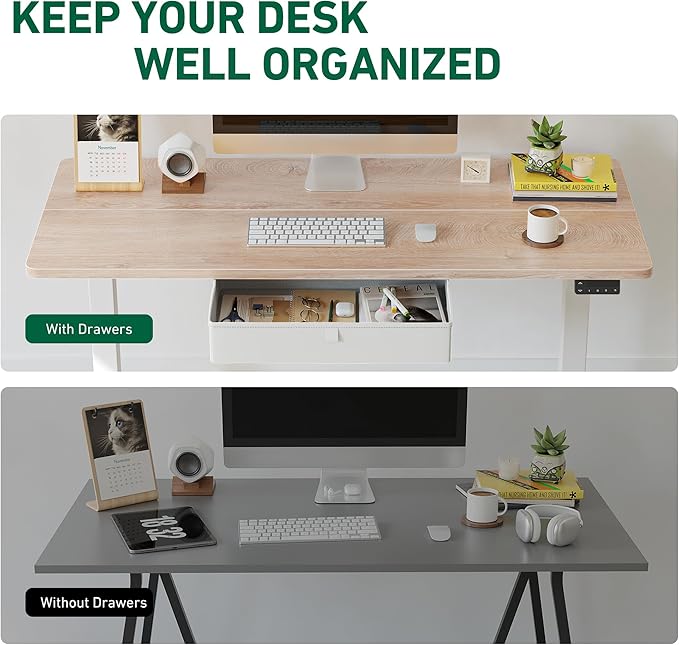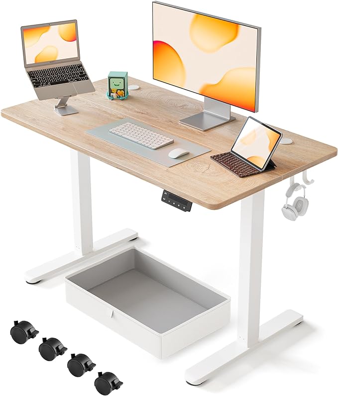 FEZIBO 40 x 24 Inches Standing Desk with Drawer, Adjustable Height Electric Stand up Desk with Storage, Sit Stand Home Office Desk, Ergonomic Computer Desk, Maple
