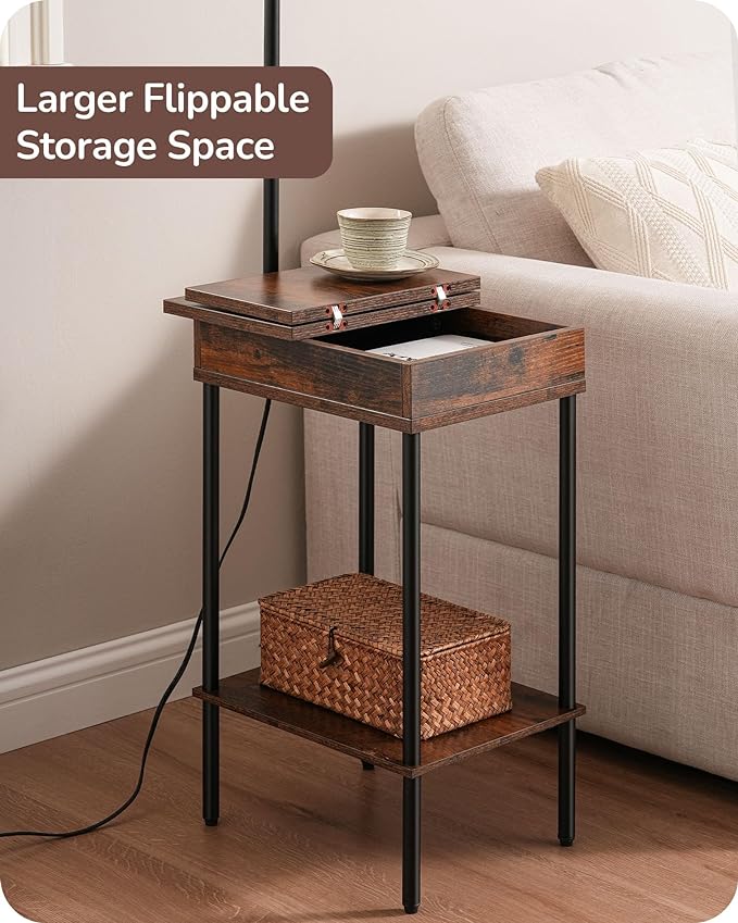 About This [Space Saving Floor Lamp with End Table] The bedroom standing light with 1 flip side drawer, and 1...