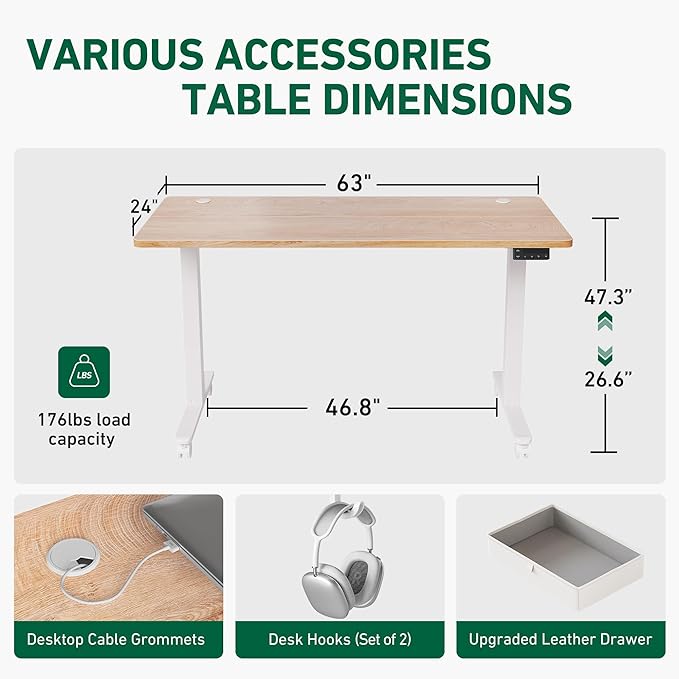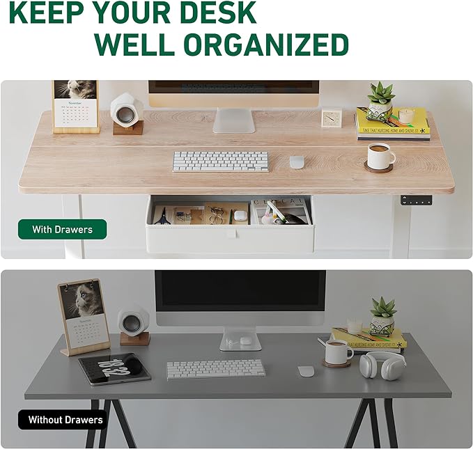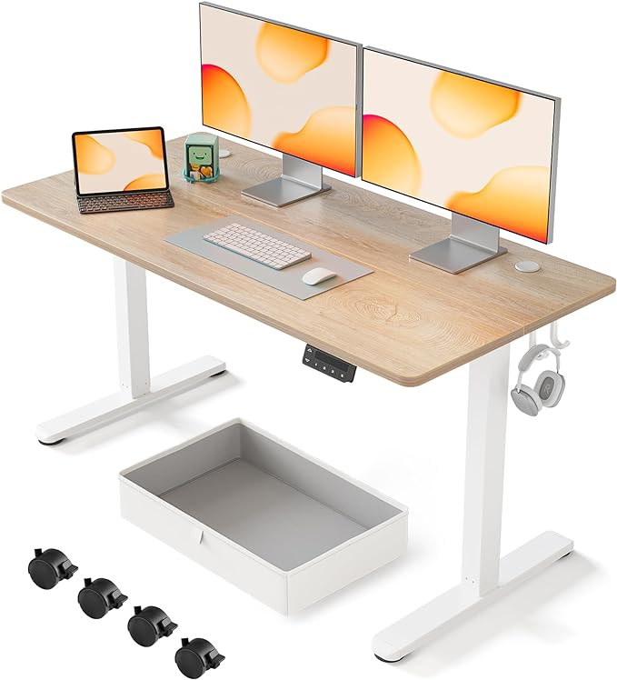 FEZIBO 63 x 24 Inches Standing Desk with Drawer, Adjustable Height Electric Stand up Desk with Storage, Sit Stand Home Office Desk, Ergonomic Computer Desk, Maple