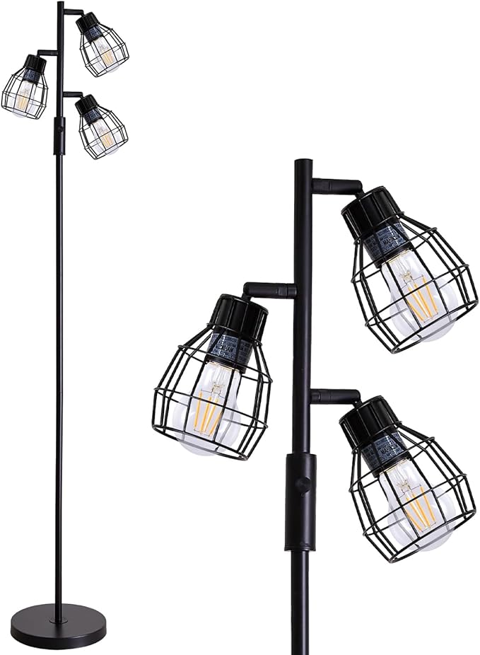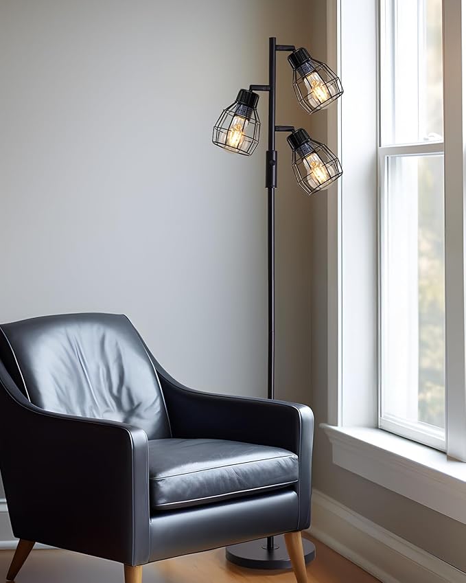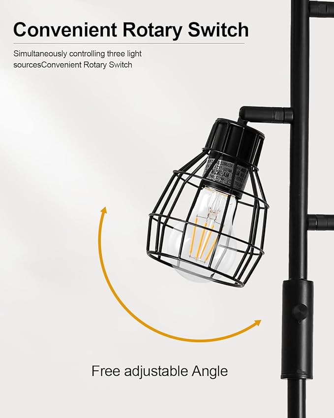 Oneach 64.25" Modern Floor Lamp for Living Room Black Floor Lamp for Bedroom Stand up Lamp for Office Industrial Tall Lamps with Rotary Switch with 3 Metal Lamp Head Adjustable(Bulbs Included)