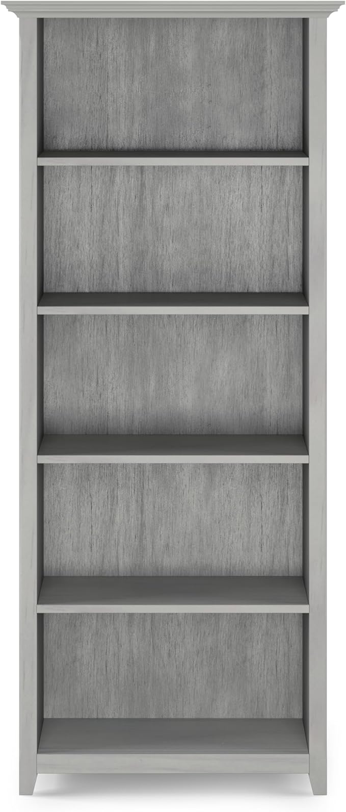 SIMPLIHOME Amherst SOLID WOOD 30 Inch Wide Transitional 5 Shelf Bookcase in Fog Grey, for The Living Room, Study Room and Office