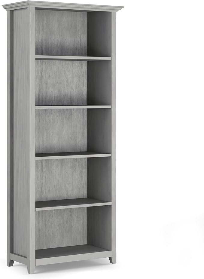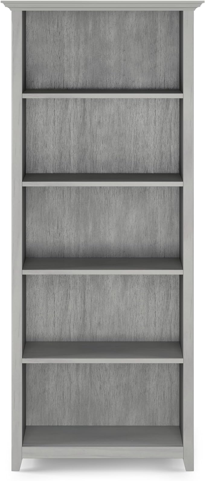 SIMPLIHOME Amherst SOLID WOOD 30 Inch Wide Transitional 5 Shelf Bookcase in Fog Grey, for The Living Room, Study Room and Office