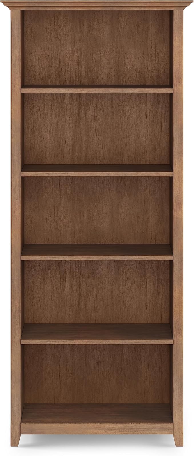 SIMPLIHOME Amherst SOLID WOOD 30 Inch Wide Transitional 5 Shelf Bookcase in Rustic Natural Aged Brown, for The Living Room, Study Room and Office
