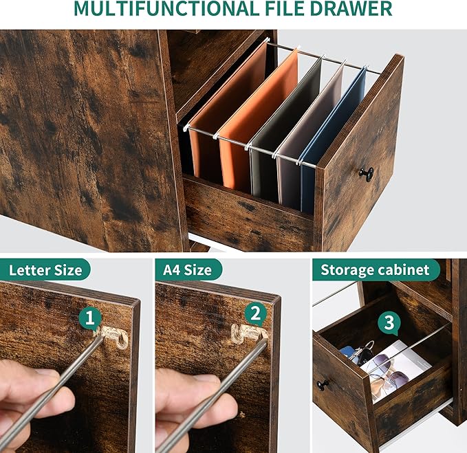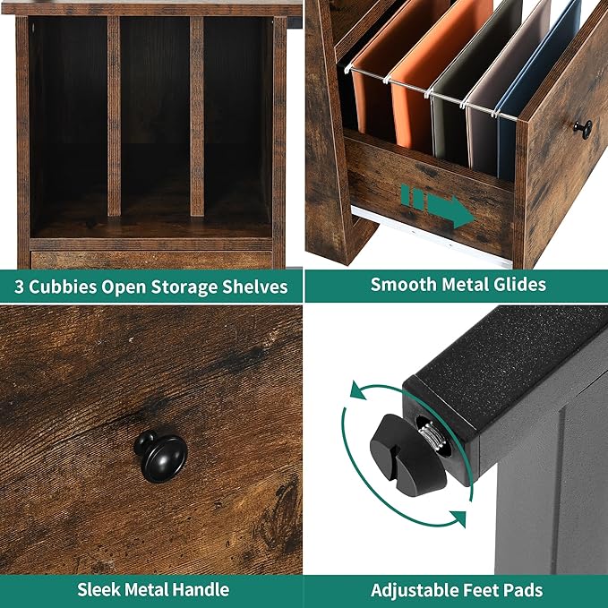 YITAHOME L Shaped Desk with Power Outlets & LED Lights, 67" Computer Desk with File Drawer, Corner Desk Home Office Desk with Monitor Stand & 3 Cubbies Storage Shelves, Rustic Brown