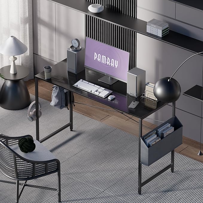 Pamray 47 Inch Computer Desk for Small Spaces with Storage Bag, Home Office Work Desk with Headphone Hook, Small Office Desk Study Writing Table