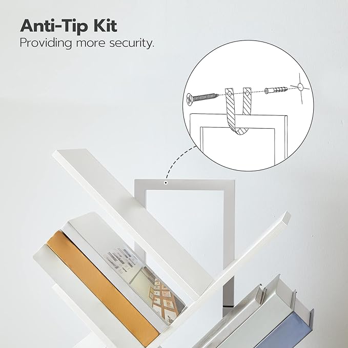 About This Stable Structure: The tree bookshelf is made from high-quality particle board and metal frame, which is stable and...