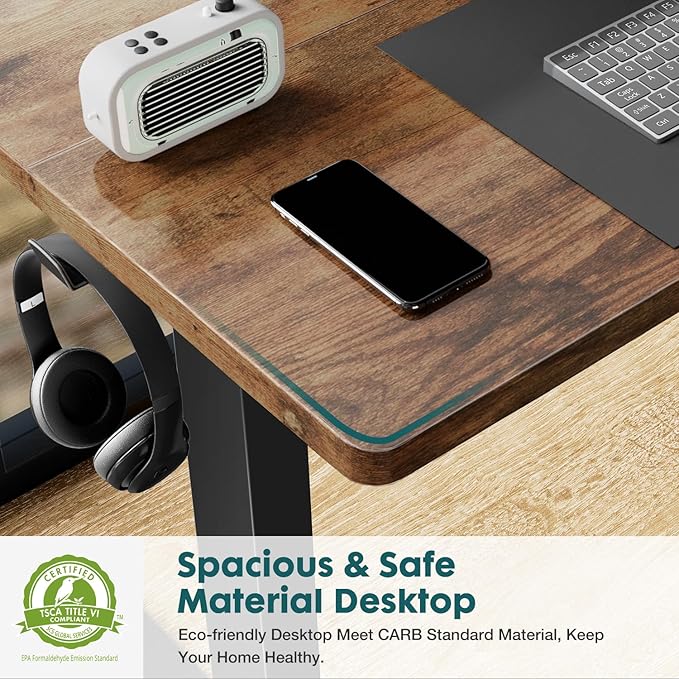 SMUG Electric Standing Desk, 63 x 24 Inch, Modern Style, Adjustable Height, 154 lbs Capacity, with Memory Presets, for Home Office, Rustic Brown