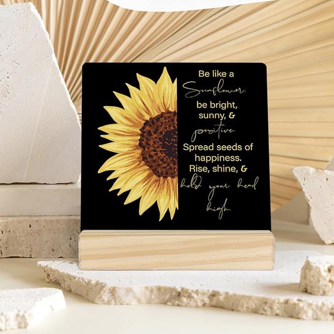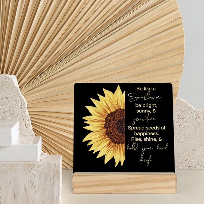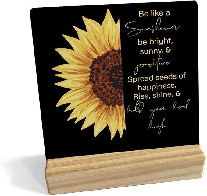 MUBIAO Sunflower Wooden Plaque Sign Desk Decor, Motivational Sunflower Quote Wood Stand Signs Desk Decor, Rustic Decor for Home Office Shelf Desk 4 x 4 Inches