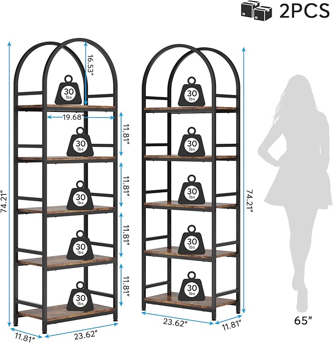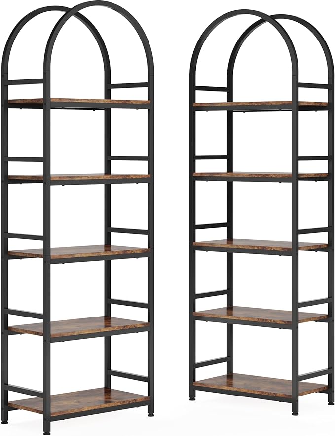 Tribesigns 5-Tier Open Bookshelf, 74.4" Wood Bookcase Storage Shelves with Metal Frame, Freestanding Display Rack Tall Shelving Unit for Office, Bedroom, Living Room, Easy Assembly(Brown, 2PCS)
