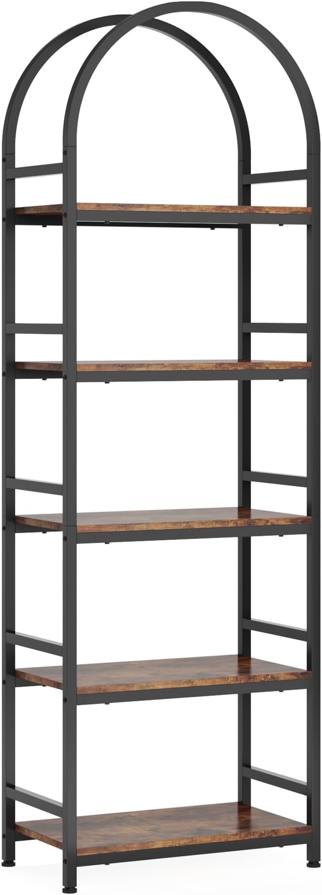 Tribesigns 5-Tier Open Bookshelf, 74.4" Wood Bookcase Storage Shelves with Metal Frame, Freestanding Display Rack Tall Shelving Unit for Office, Bedroom, Living Room, Easy Assembly(Brown, 1PC)