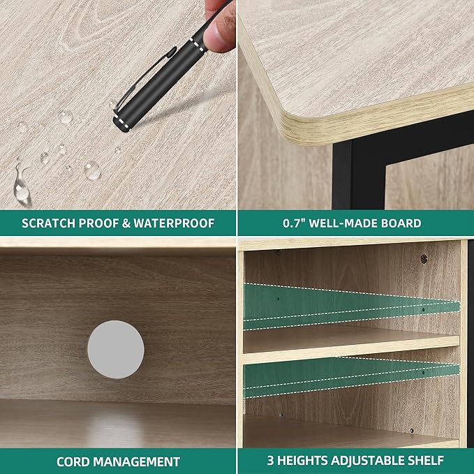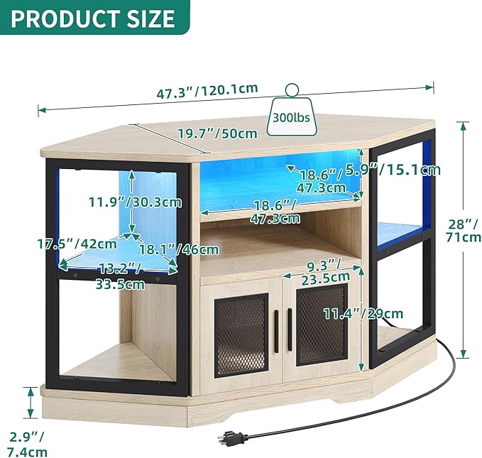 YITAHOME RGB LED Corner TV Stand for TVs up to 55/50 Inch with Power Outlet, Modern Farmhouse Entertainment Center, Wood TV Media Console with Storage Shelves for Living Room, White Oak