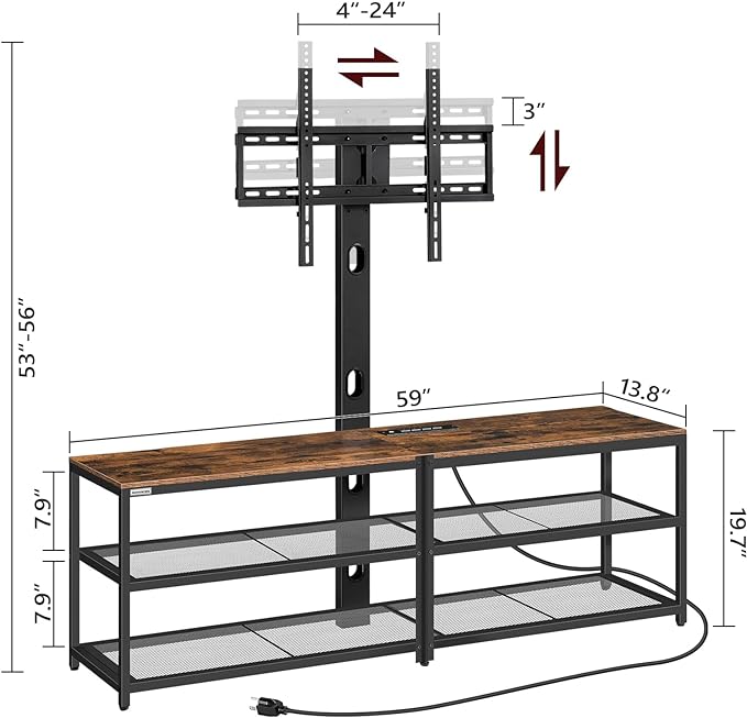 TV Stand with Mount and 4 Power Outlets 59", Entertainment Center Media Console, Swivel TV Stand Mount up to 75 inch TVs, Height Adjustable, Metal Frame for Living Room, Bedroom TVHR35E01V