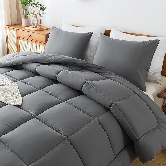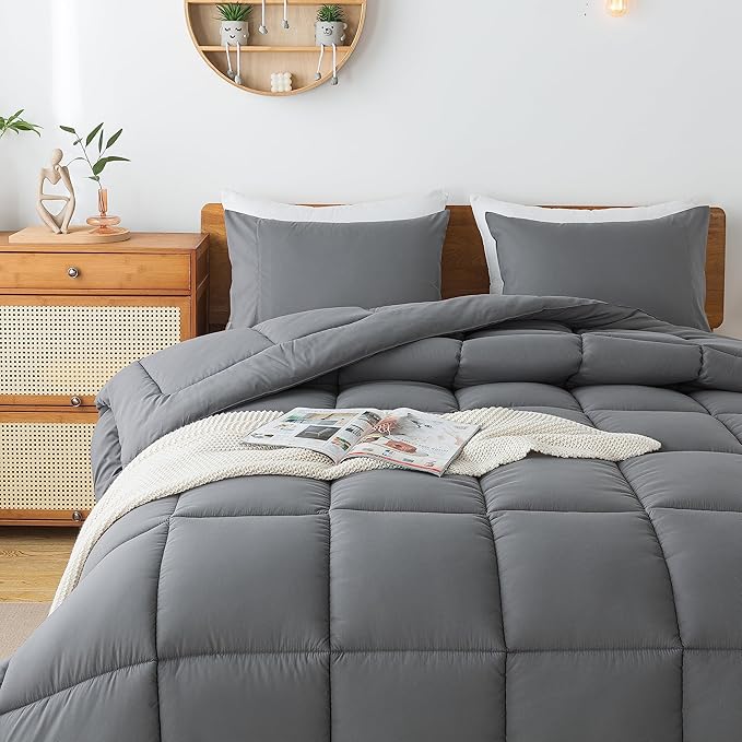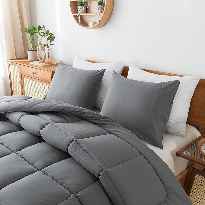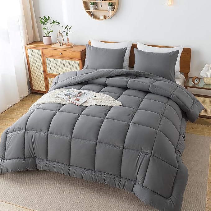 Grey Comforter Set, King Lightweight All Season Soft Down Alternative Bed Comforter, 3 Pieces Bedding Set(King Size,102"x90")