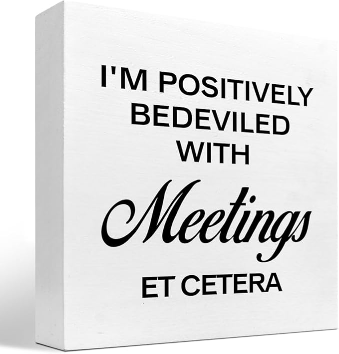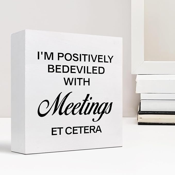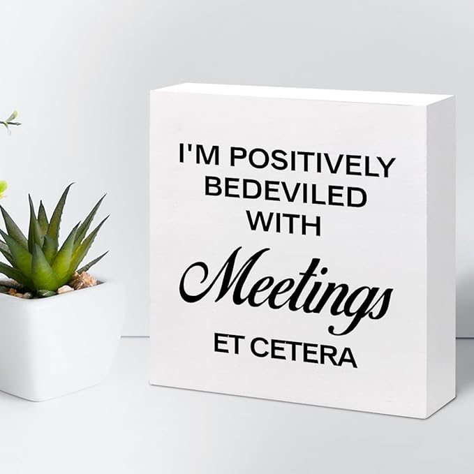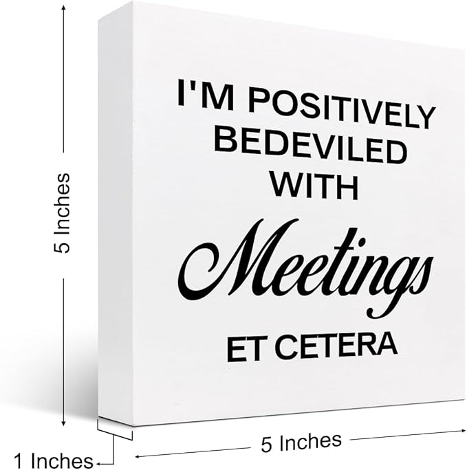 I'm Positively Believed with Meetings Et Cetera Wood Block Sign Desk Decor,Funny Wooden Box Plaque Sign Desk Decor for Home Office Shelf Table Decor Decorations