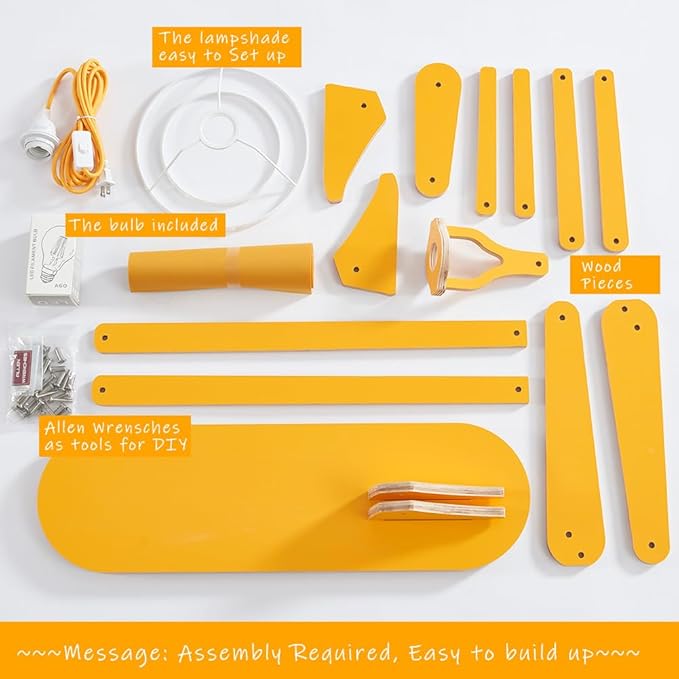 Cool Mini Wood Floor Lamp for Living Room Bedroom Farmhouse - Corner Decorative Reading Standing Light Creative Swing Arm Arc Design Gift for Kids Room (Egg Yellow)