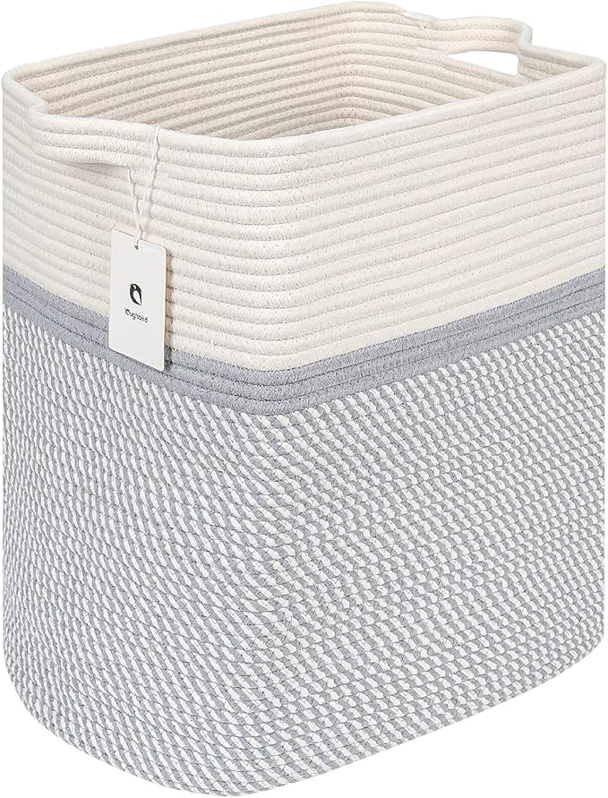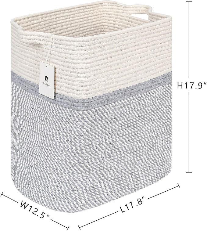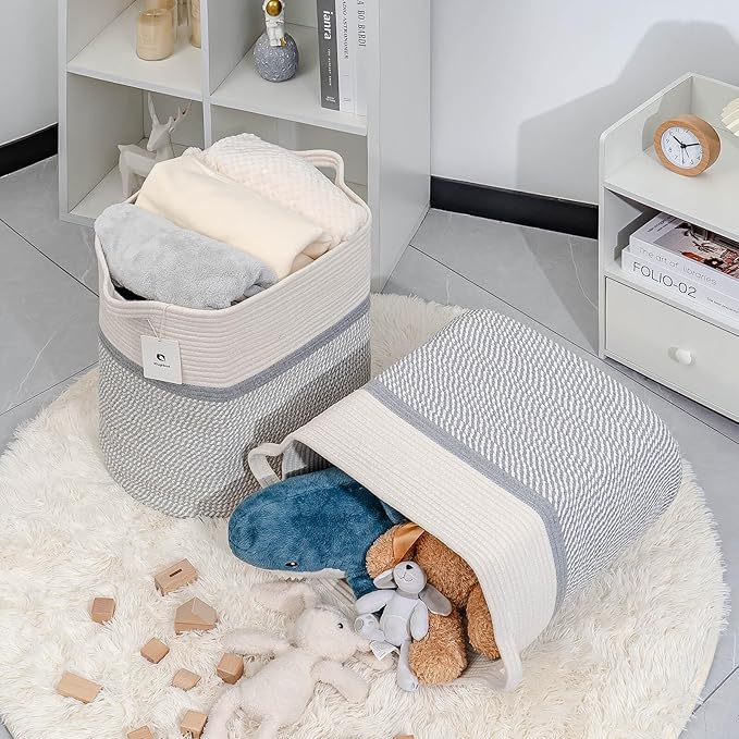 Rectangle Woven Baskets for Storage, Cotton Basket Large Blanket Basket, Laundry Nursery Rope Basket Living Room, Toy Storage Tall Laundry For Organizing, Large Baskets Clothes Collapsible