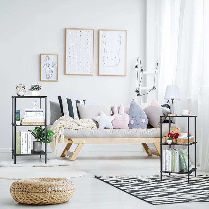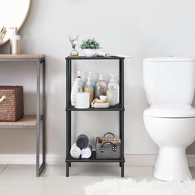 melos 3 Tier Bookshelf, Classically Tall Bookcase Shelf Storage Organizer, Modern Book Shelf for Bedroom, Living Room and Home Office, Black