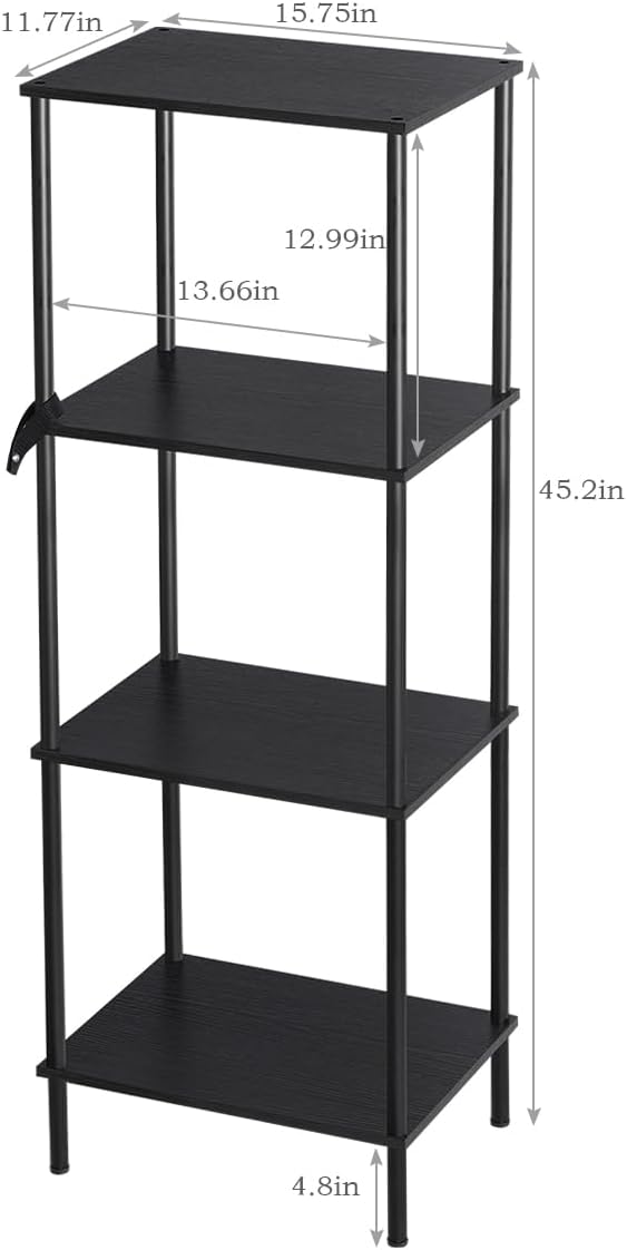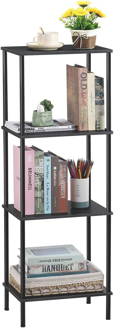 melos 4 Tier Bookshelf, Classically Tall Bookcase Shelf Storage Organizer, Modern Book Shelf for Bedroom, Living Room and Home Office, Black