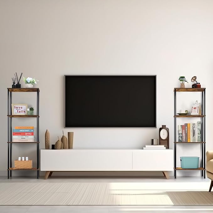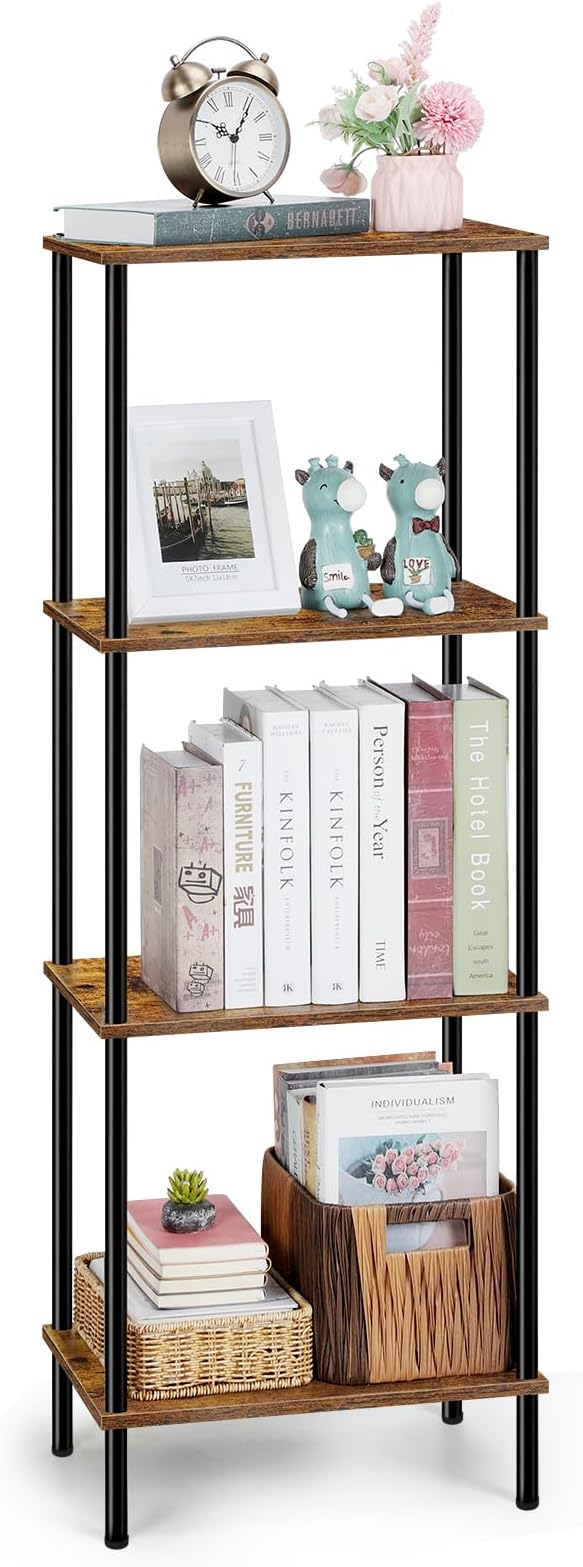 melos 4 Tier Bookshelf, Classically Tall Bookcase Shelf Storage Organizer, Modern Book Shelf for Bedroom, Living Room and Home Office