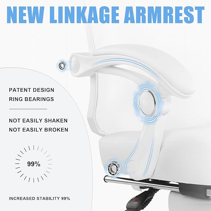 Misolant Ergonomic Office Chair with Footrest, Ergonomic Desk Chair with Adjustable 2D Lumbar Support, High Back Office Chair with Adjustable Headrest, Comfortable Leather Office Chair