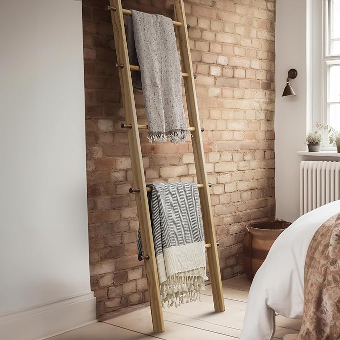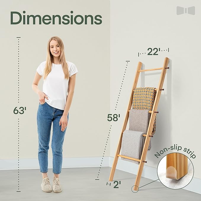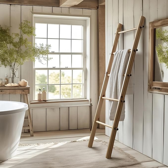 5 Ft Wooden Blanket Ladder Farmhouse - Quilt Ladder for Bedroom - Wood Ladder Decor - Decorative Ladder for Blankets - Easy to Assemble - Farmhouse Ladder Blanket Holder - Wooden Ladder for Blankets