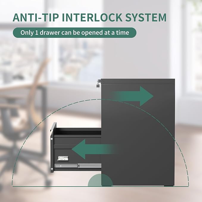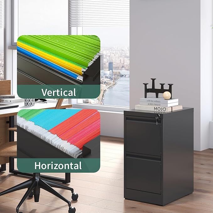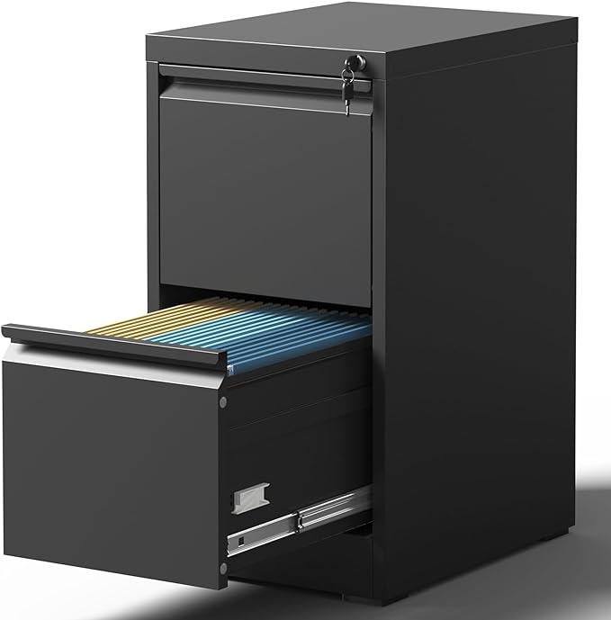 2 Drawer File Cabinet with Lock, Metal Vertical Filing Cabinets for Home Office, Steel Storage Cabinet for Hanging Legal/Letter Size Files, Assembly Required (Black)