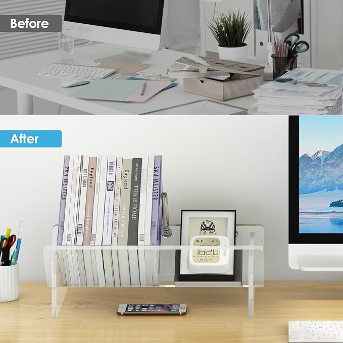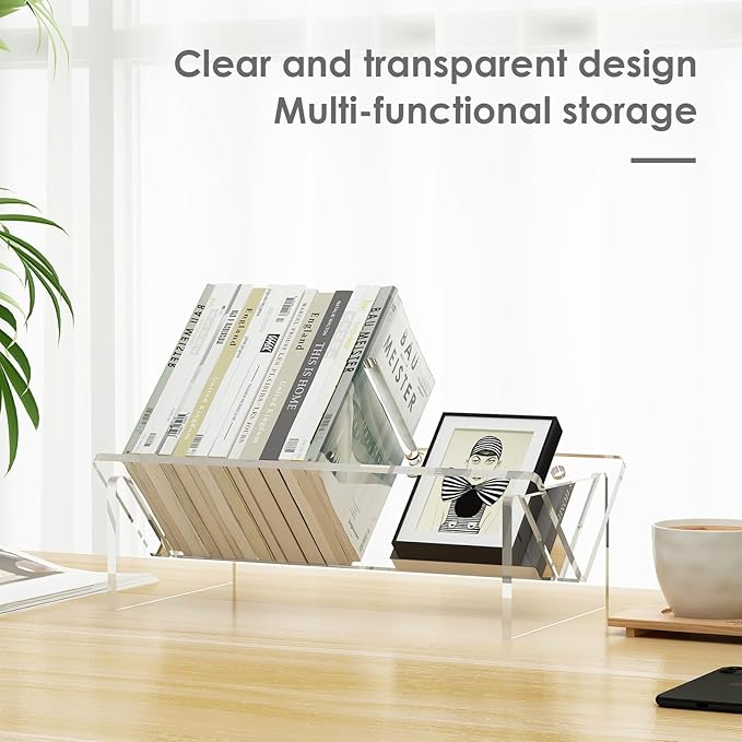 Acrylic Desk Bookshelf,Small Desktop Bookcases Clear Book Shelf Organizer for Home Office School,Book Stand Display Rack for CDs Magazines Books