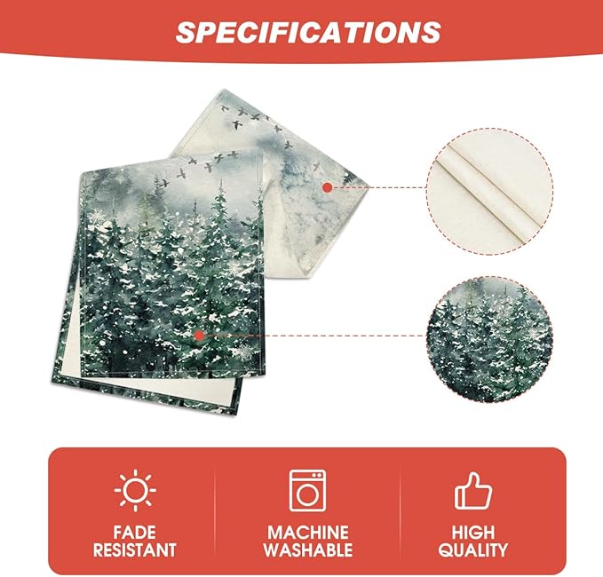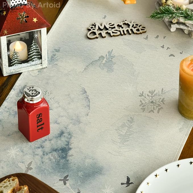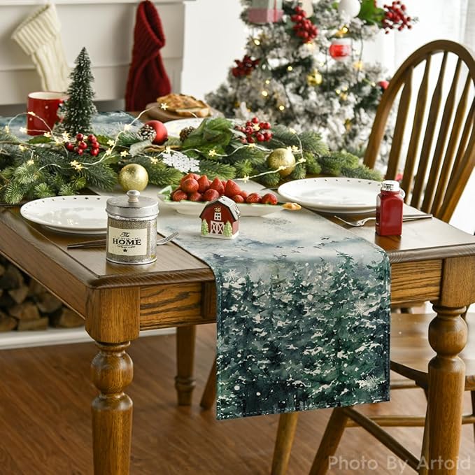 Artoid Mode Green Tree Snow Christmas Table Runner, Seasonal Winter Kitchen Dining Holiday Table Decoration for Home Party Decor 13x90 Inch