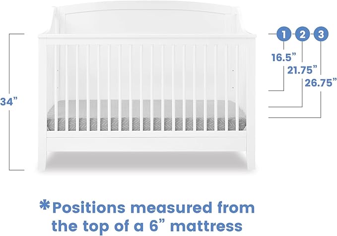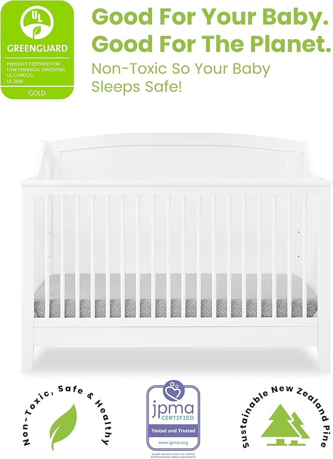 Delta Children Campbell 6-in-1 Convertible Crib - Greenguard Gold Certified, Bianca White