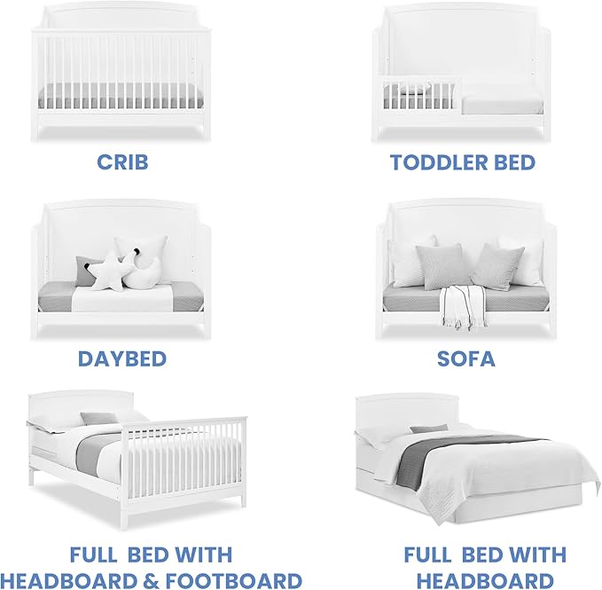 About This 6-IN-1 CONVERTIBLE CRIB: Crib converts to toddler bed, daybed, sofa, full size bed with headboard and footboard and...