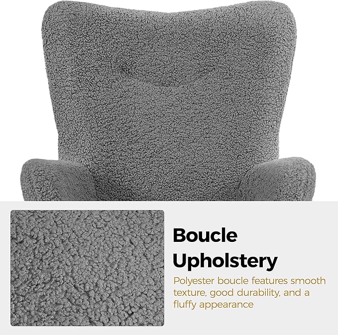 Yaheetech Accent Chair and Ottoman Set, Sherpa Armchair with Golden Metal Legs and High Back, Footstool for Living Room, Lounge, Gray