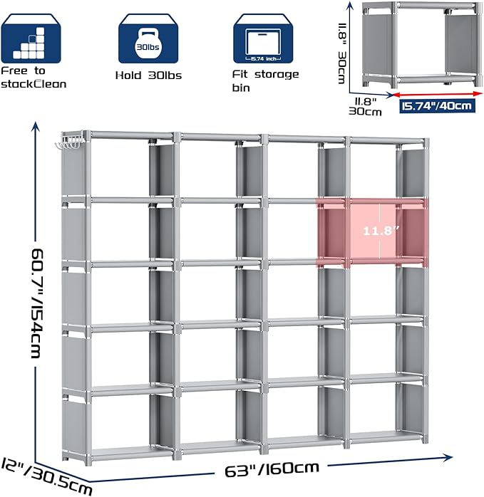 Mavivegue Book Shelf, 20 Cube Storage Organizer, DIY Bookcase, Metal Cube Bookshelf,Tall Book case for Bedroom, Living Room,Office,Closet Storage Organizer, Grey Cubicle Storage Rack