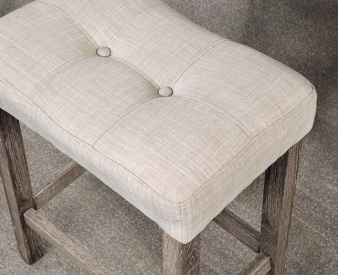 Furniture of America Colt Transitional Solid Wood 5-Piece Counter Height Set, Includes Square Table and 4 Beige Upholstered Stools for Kitchen, Dining Room, Gray