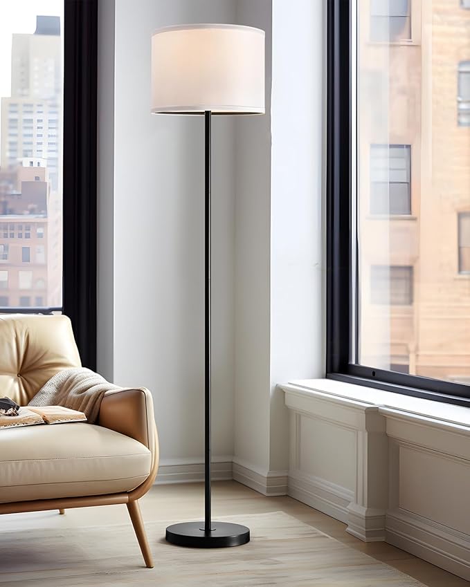About This 【Elegant & Industrial Design】 Black standing lamp ,metal material, White Linen Lamp shade,The gorgeous industrial floor lamp is...