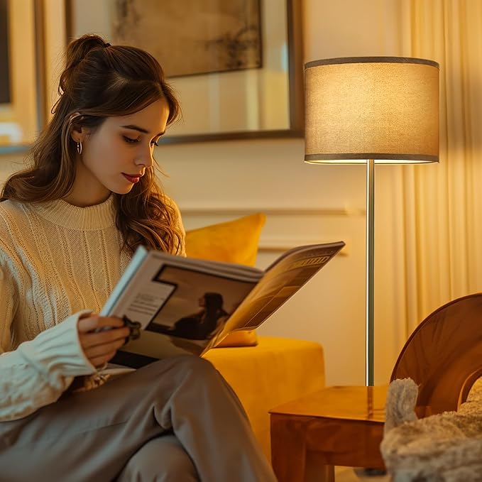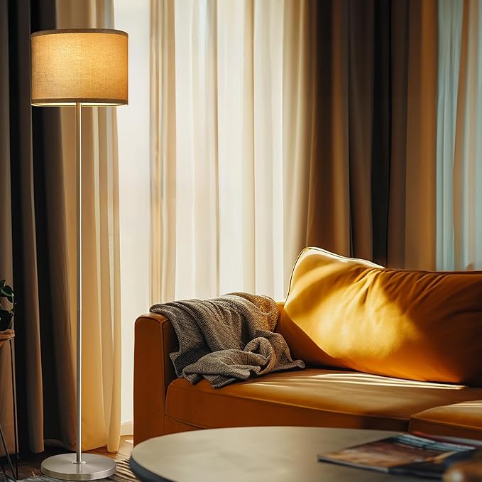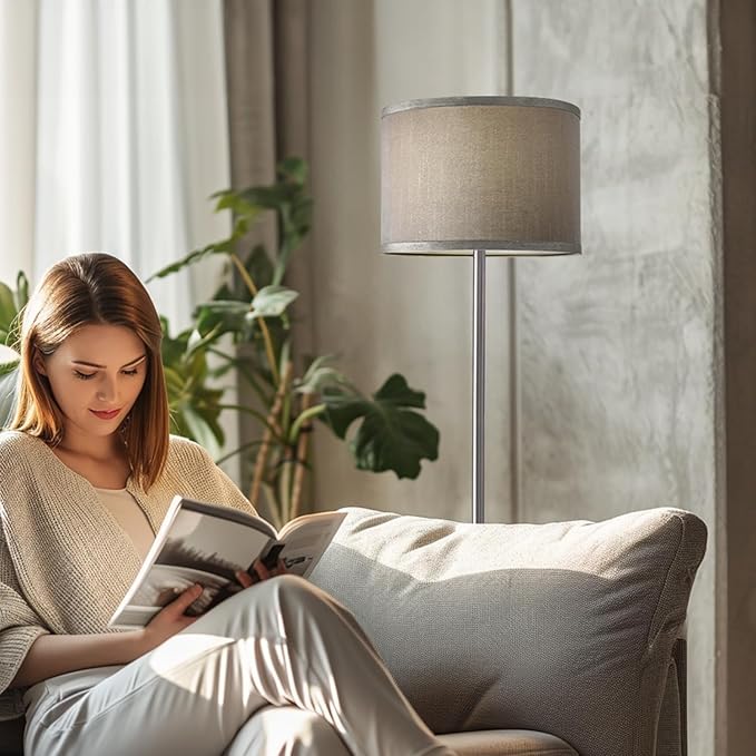 About This 【Elegant & Industrial Design】 silvery standing lamp ,metal material, Grey Linen Lamp shade,The gorgeous industrial floor lamp is...