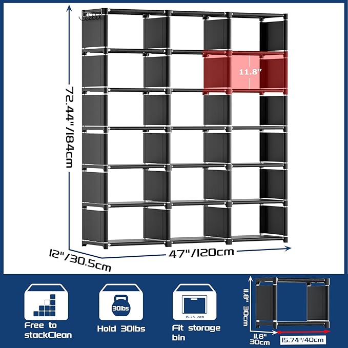 Mavivegue Book Shelf, 18 Cube Storage Organizer, DIY Bookcase, Metal Cube Bookshelf, Cubbies Closet Storage Organizer Shelves for Bedroom,Living Room,Home,Office