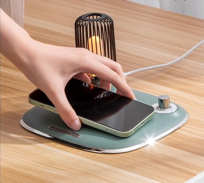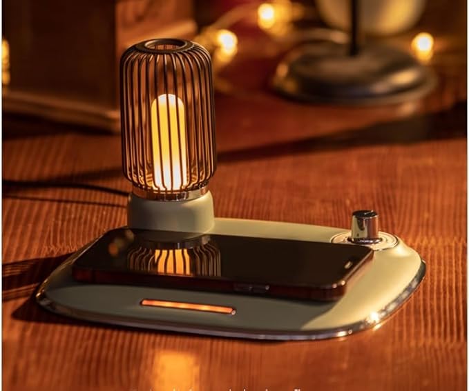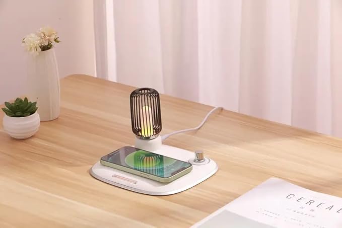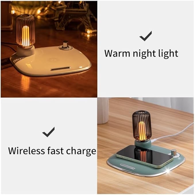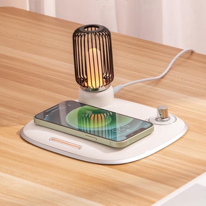 Bedside Desk Table Lamp LED with Wireless Charger Night Sleep Light Mode Dimmable Control Rotary Switch Rustic Simple Rotary Switch Metal Lamps cage QI Fast Charging Pad (White)