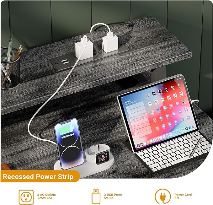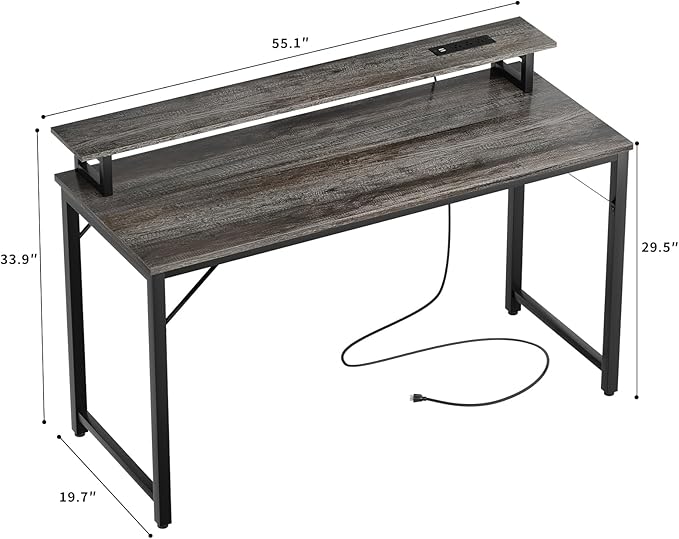 About This 【Desk with Power Outlets & Monitor Stand】This computer desk is equipped with ith a built-in power strip with...