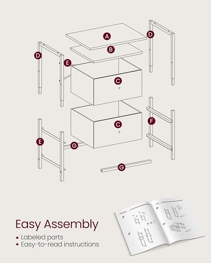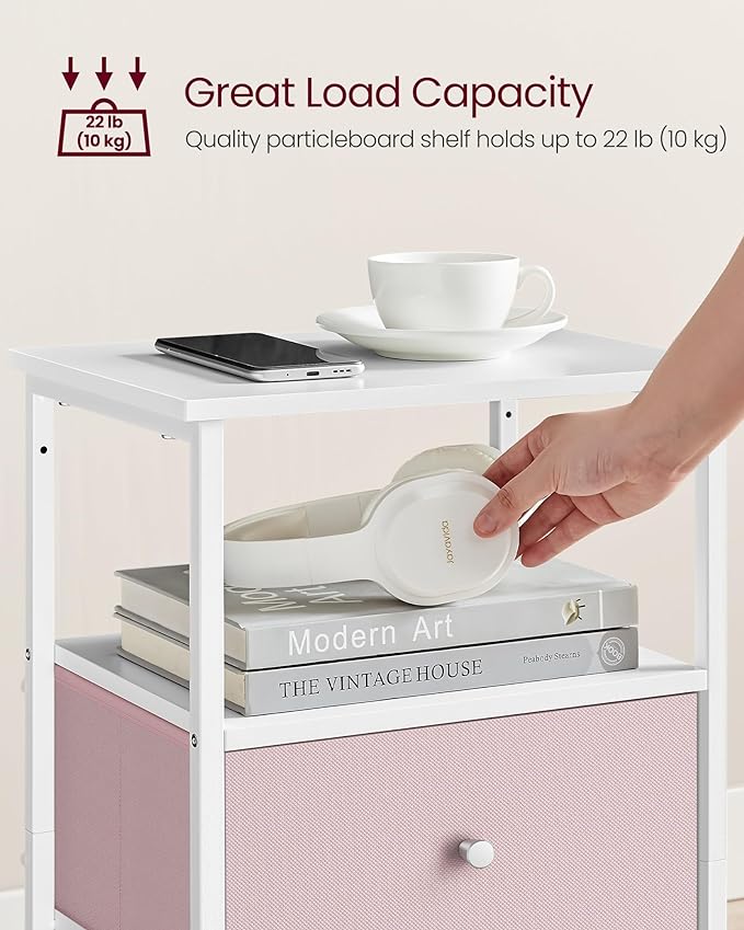 VASAGLE Nightstand, Side Table with 2 Fabric Drawers, 24-Inch Tall End Table with Storage Shelf, Bedroom, Jelly Pink and White ULGS025R05
